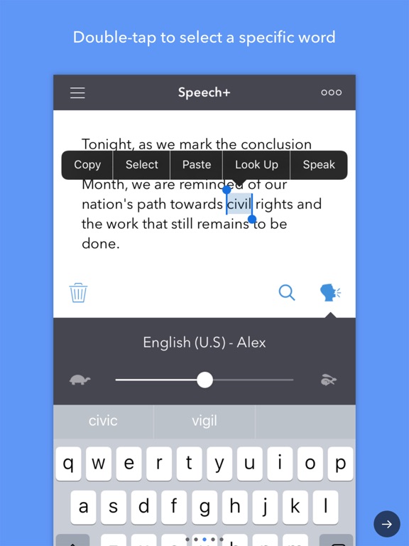 - Choose from variety of voices/languages.