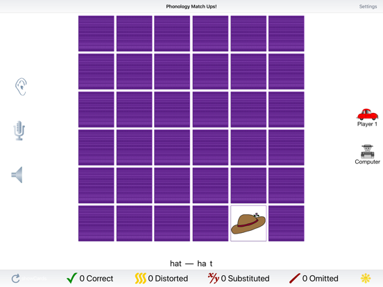 Match Ups! is one of our favorite games of all time. The first version of Match Ups! was added to our Attention and Memory:Volume I CD in 1996 and we’ve been enhancing it ever since. This version uses the words and pictures from our Phonology and Minimal Pairs apps.