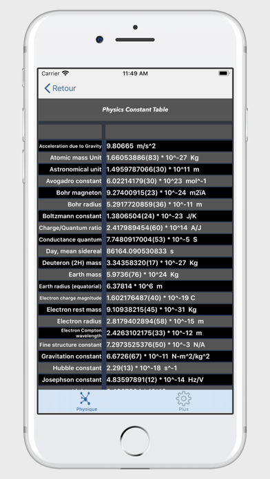 • Physique tableau constant