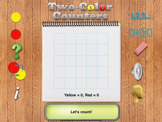 Two-Color Counters are excellent teaching tools for sorting, counting and probability activities. This app simulates double-sided counters that feature red on one side, and yellow on the other.