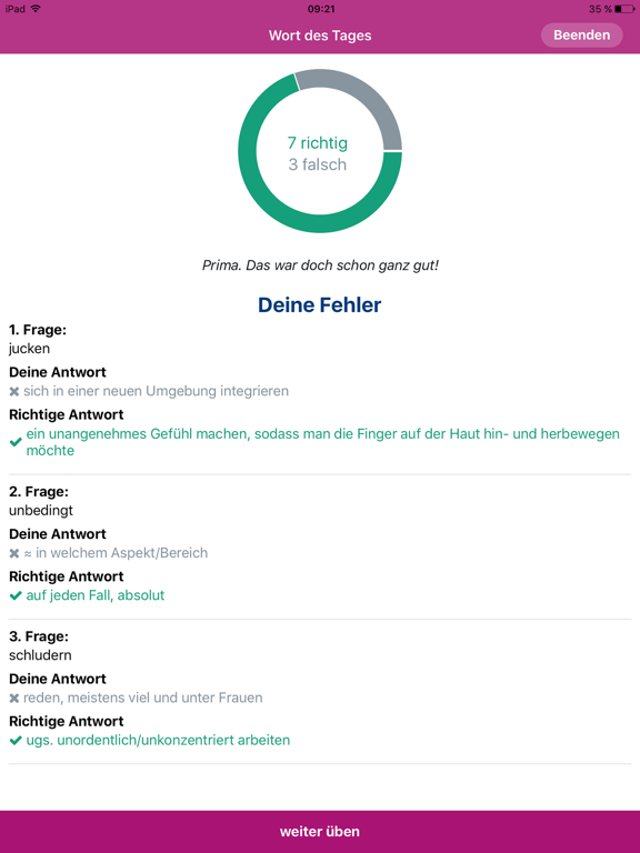 * Zusätzlich zum Wort des Tages erhältst du jeden Tag 10 Übungen.