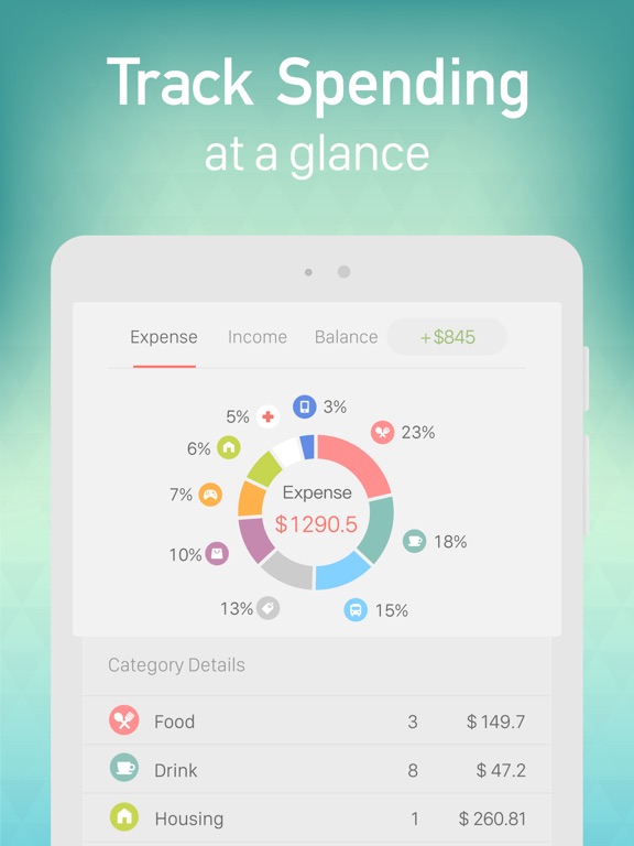 - Easy to use interface let you track your spending and categorize transactions in simple taps.