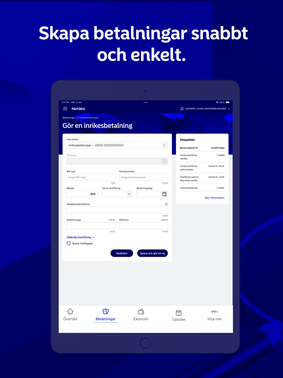 •Överföra pengar mellan egna konton