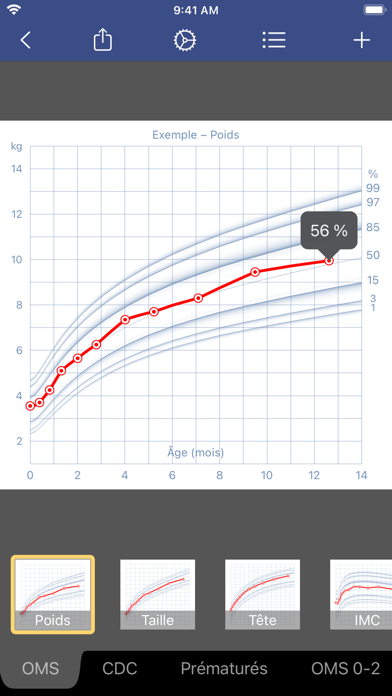 • Courbes percentiles couvrant l'ensemble des statistiques de l'OMS et du CDC allant jusqu'à 20 ans