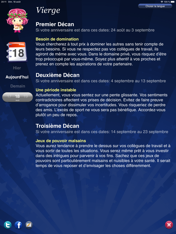 - Partagez votre horoscope par e-mail, twitter ou facebook