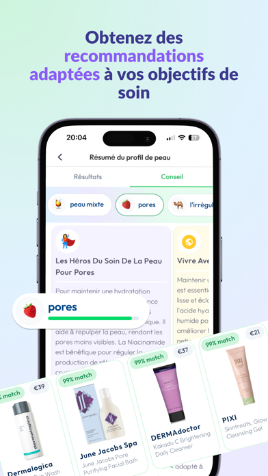 Que tu débutes ou que tu aies déjà tout testé, l’app t’aide à comprendre ce dont ta peau a besoin, créer la bonne routine et suivre des progrès visibles dans le temps.
