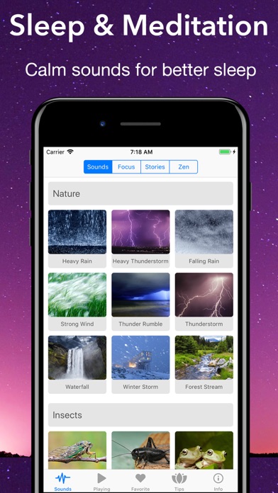 Many people have used ambient sounds and white noise to help them fall asleep, with powerful results. This app includes built-in, playable sounds with crystal-clear quality that can help soothe you into a relaxing and peaceful rest.