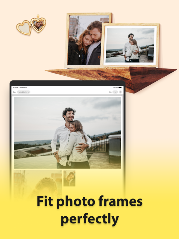 This app allows you to print your photos in real size like inch or centimeter. You can add multiple photos, resize and crop them, and then send to any printer right from your device.
