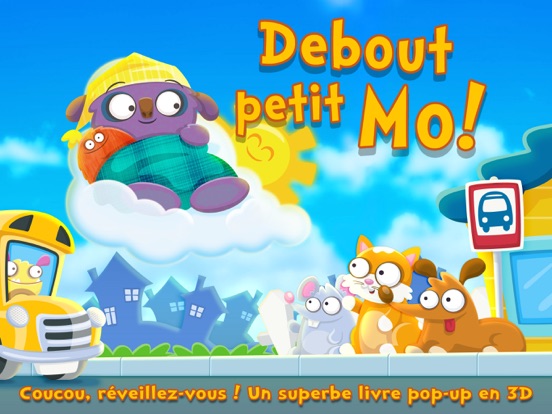 Debout, petit Mo ! est une application consacrée à la routine du lever pour tablette et téléphone portable. C'est la suite de l'application à succès dédiée au coucher Bonne nuit petit Mo (numéro 1 aux États-Unis et dans 40 autres pays à travers le monde). Tandis que le soleil se lève et qu'un nouveau jour commence, Mo, un joli petit monstre, se prépare à aller à l'école. De belles images, une narration aux douces rimes et une bande originale entraînante, c'est l'application idéale pour apprendre aux tout-petits à se préparer pour la journée.