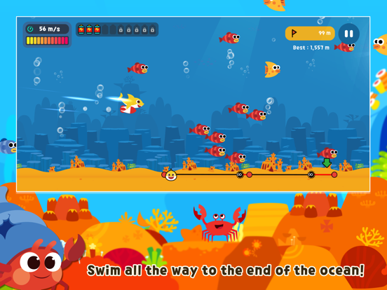 Full of curiosity, Baby Shark loves exploring the ocean. Help him get as far as he can together with his friends!