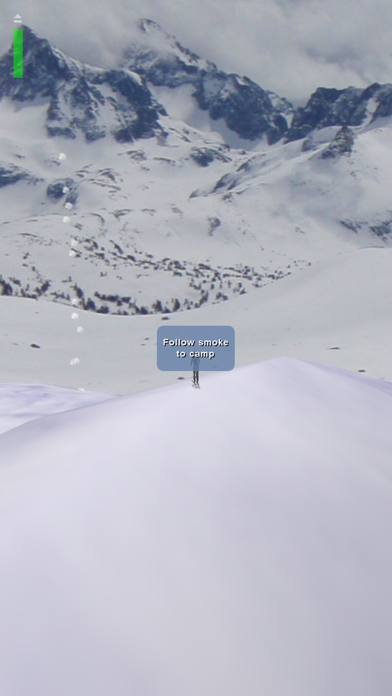 Ski down the mountain following smoke to your camp. Watch out for trees, cliffs, avalanches, and exhaustion. Your health goes down with each crash and with passing time. If the bar at upper left turns completely red the game is over.