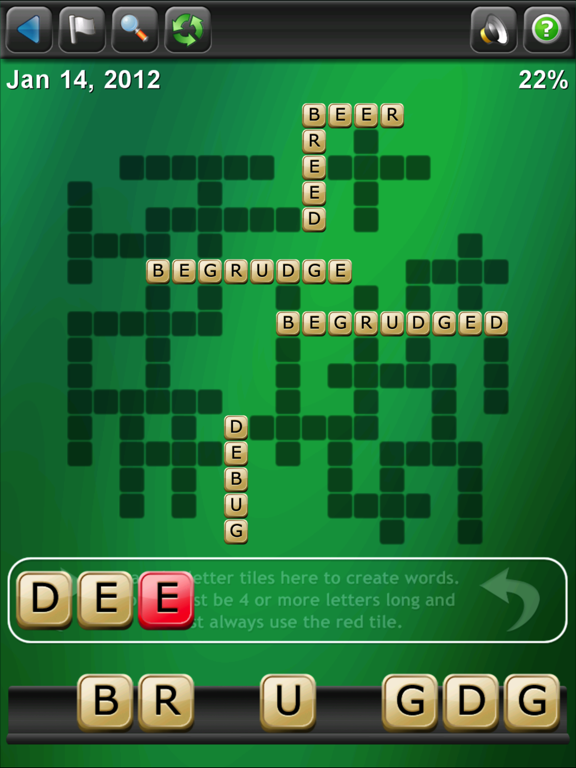In each Bewilderword puzzle a 9 letter word has been scrambled and all of the words that can be made from those 9 letters have been laid out and hidden in a crossword-like pattern for you to find. The only catch is that each of the hidden words must contain the highlighted red letter tile.