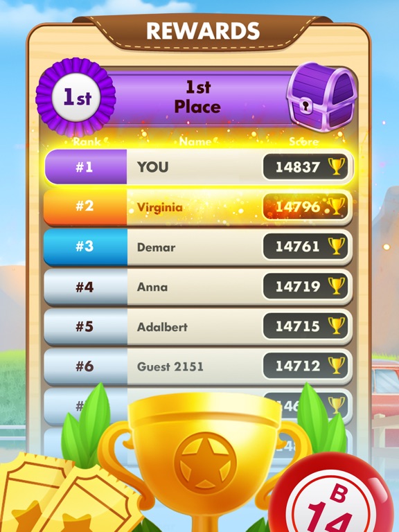 Comme vous avancez, des objets et l'PRIMES se cachent sur les cartes de bingo et dans des coffres au trésor. recueillir tous pour accomplir des quêtes et débloquer des endroits plus excitants! TOUS LES JOURS revendication PRIMES - roue de bonus Spin pour découvrir votre prix!