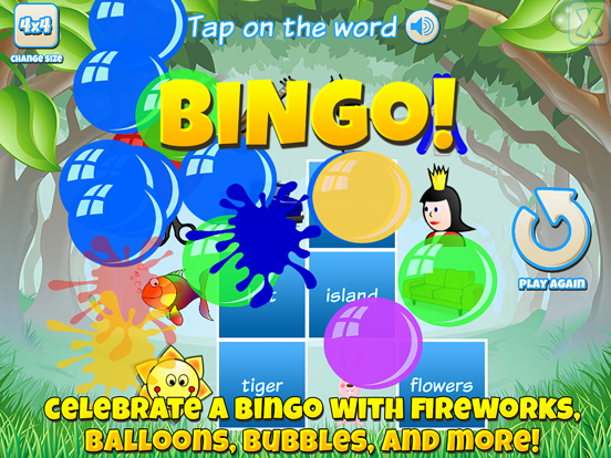 Fun and interactive bingo games for kids that teaches them important subjects such as shapes, colors, animals, numbers, letters, words, addition, and more!