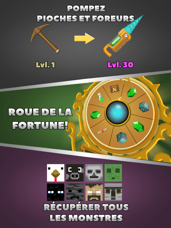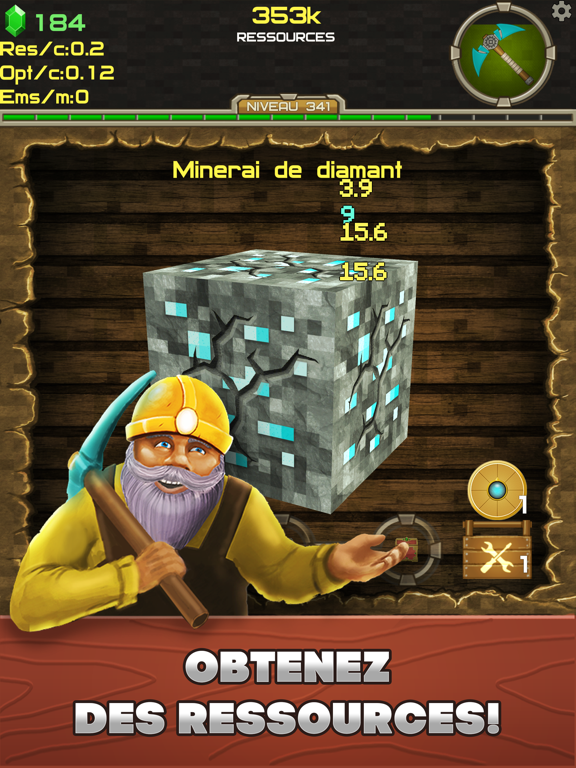 - Obtenir 30 types de ressources, y compris: diamants, or, charbon, fer, émeraudes