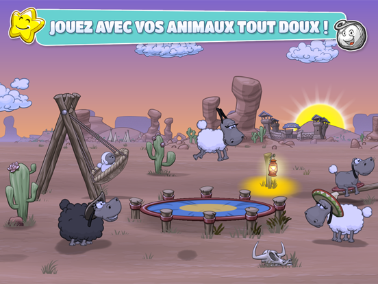 Chaque animal requière votre attention ! Ces adorables boules de laine adorent s'amuser. Faites sauter vos moutons et utilisez différents jouets comme le trampoline, la bascule et la balançoire pour jouer avec eux ! Regardez vos animaux interagir entre eux et observez leurs réactions aux objets que vous leur donnez ! Personnalisez votre pâturage avec des objets amusants et choisissez différents environnements comme le Far West ou les Pirates. Regardez votre troupeau gambader le jour et dormir près du feu de camp la nuit. Faites votre possible pour garder vos moutons heureux et en bonne santé afin de les empêcher de devenir de gros nuages floconneux dans le ciel.