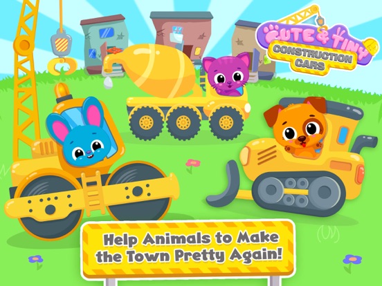 The Cute & Tiny Pet Town needs some cleanup and renovation! Help kitty Sue, puppy Bu and bunny Blu drive big construction cars and make the town pretty and shiny again! Cute & Tiny Construction Cars - the coolest building and fixing game for babies, toddlers and preschool kids!