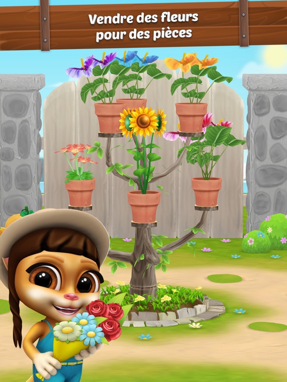 ◼ Quels animaux de compagnie virtuels ne voudraient pas vivre dans une cabane dans les arbres, avoir une baignoire extérieure en bois et un jardin fleuri? Téléchargez Emma Jardinier: Jeux de Jardin des Fleurs et votre aventure jeux de jardinage peut commencer! Passez par de nombreux niveaux passionnants et décorez différentes zones du jeux de jardinier, accomplissez les missions dans le jeu Emma le Jardinier: Jeux de Jardin pour gagner des récompenses, cultiver différentes espèces de fleurs telles que roses, tulipes, marguerites et orchidées. Aidez votre animal de compagnie virtuel à collecter et à vendre des fleurs sur le marché.
