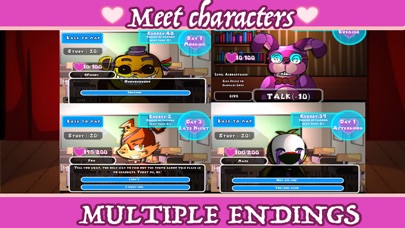 As a student in Jumpscare Academy, you get Five Days to build up love for your fellow students and your favorite animatronic characters! Each day is a different opportunity to find love and you'll have Five Tries At Love! You'll have to talk to them, answer their questions, and give them affection to build up their love for you.