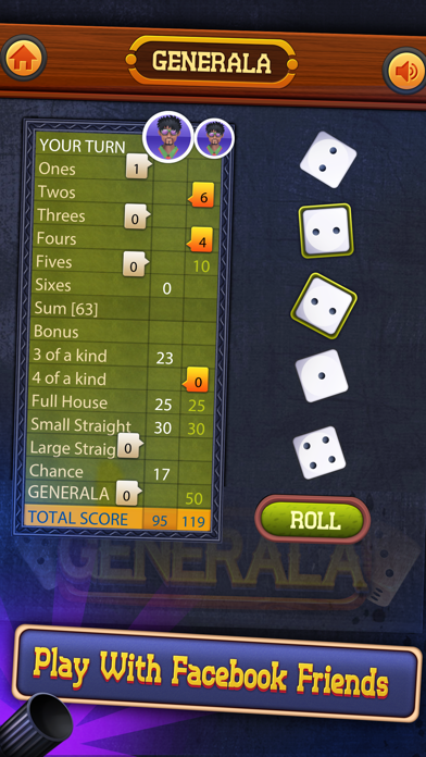 Generala is played with five dice. This popular game, lasts for 13 rounds as the players roll the dice and attempt to complete various combinations. The rules of generala are simple, and the game remains popular among people of all ages. Simply roll the dice, make your choices and score some points. At the end of the 13 turns, the player with the highest point total wins the game