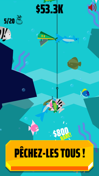 Lancez votre ligne, atteignez les profondeurs et attrapez autant de poissons que possible en remontant ! Améliorez votre matériel pour attraper plus de poissons, plonger plus loin, trouver des proies rares et même de nouvelles espèces !