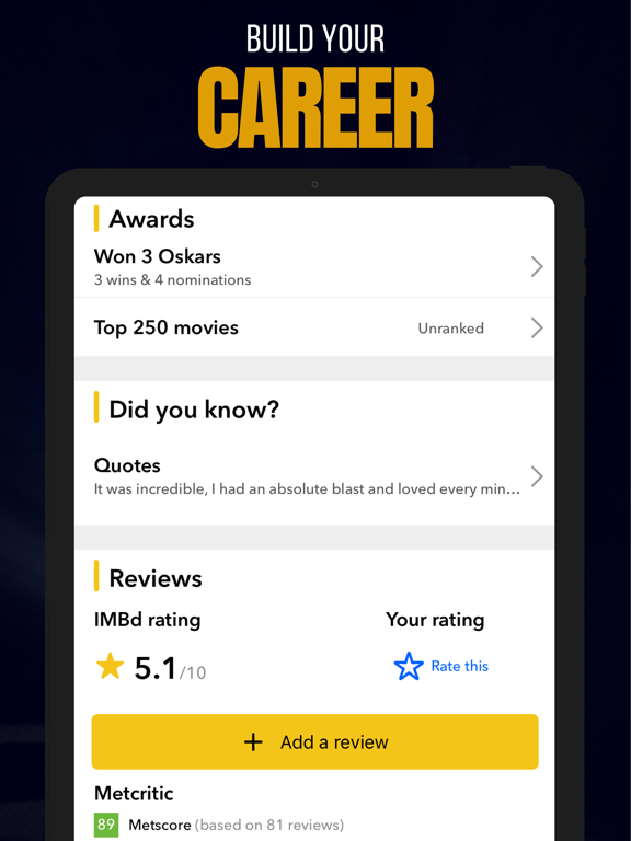 Less than 1% of aspiring actors make it to the A-List! Will your movies break box office records? Will your TV show be renewed next season? Do you have what it takes to make the cut and leave a legacy?