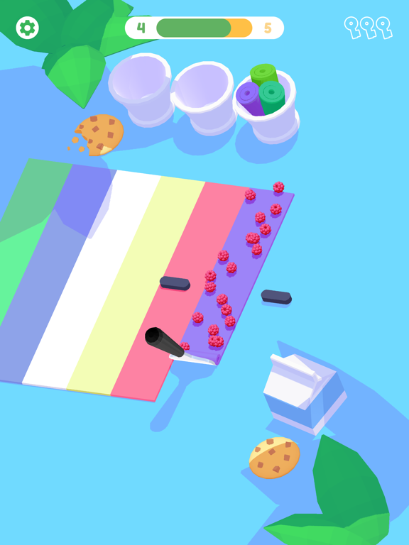 Tap and hold to roll ice-cream with various fillings: from chocolate drops and topping to fresh fruits .