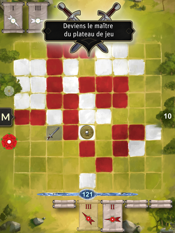 Positionne tes chevaliers avec habileté, lance tes troupes et conquière le plus de surfaces connexes possible. Gêne ton adversaire, contrecarre ses projets et perce ses rangs.