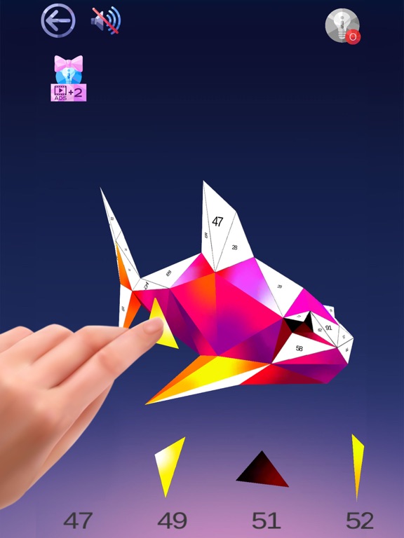 In this 3D puzzle you will find a lot of joyful emotions and fun, calm your nerves. Antistress that develops creative thinking. Drag the colored triangle with the number to a large coloring and collect the entire 3D shape in pieces, and enjoy the painting animation at any time and play even without the Internet.