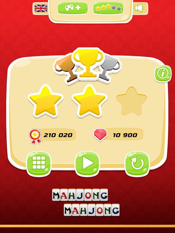 Mahjong est un jeu classique qui utilise un ensemble de tuiles. Le but de ce jeu est de faire correspondre des tuiles identiques et de les enlever du conseil. Cela permettra d'exposer les tuiles sous, et de les rendre ouverts pour jouer. Le défi consiste à éliminer toutes les pièces sur le plateau.