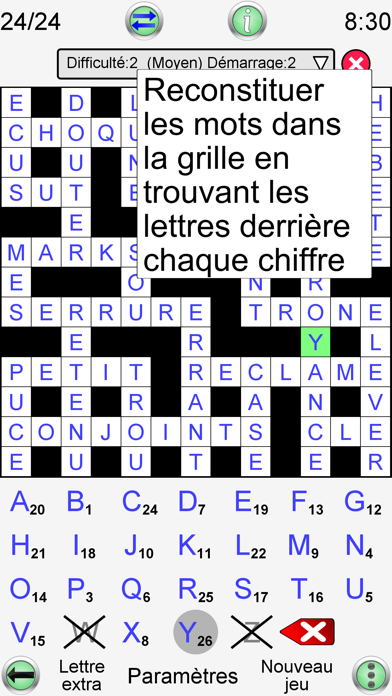 5) Si un jeu est trop difficile, l'application offre deux outils précieux pour vous aider (voir ci-dessous).