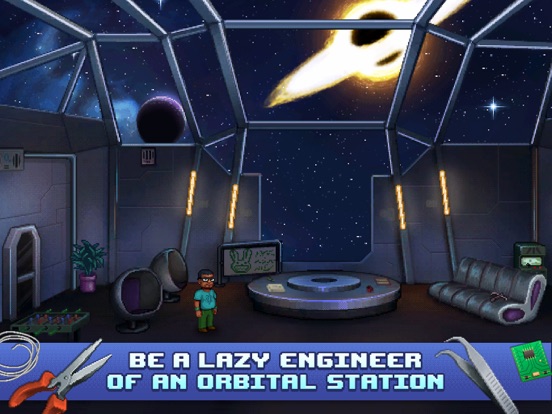 Odysseus Kosmos and his Robot Quest it’s a traditional 2D point’n'click game with retro-pixel style graphics. You are the ship engineer Odysseus Kosmos; you and your service robot Barton Quest are stuck in deep space near a black hole, all by yourselves. Your shipmates are down on the surface of a planet where time moves far, far slower and you, along with your robot, have been waiting for years for them to return to your orbital station. You were used to your comfortable boredom, but then the ship starts acting funny: it looks like this mysterious black hole affect your ship in strange and unexpected ways, cutting off your communications and threatening with de-orbiting the station and sending you stranded into deep space… unless you can do something to stop it!