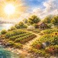 Feel the shift in the air. A heatwave doesn't just scorch the sky — it sets your crops back and can kill the most vulnerable plants outright. A sudden rain offers a moment of reflective stillness and natural relief for your thirsty soil. Manage your farm through sun, rain, and heatwave, and your nightly journal will remember every moment in a poetic diary.