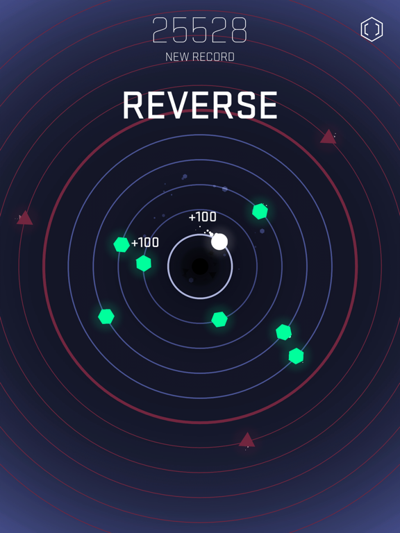 The rules are simple: switch the orbits, survive against all odds and keep calm. A tap is all it takes to get through. But you’ll discover less is more when your dexterity starts to be put to the test. Starting of fairly simple and gradually building up into something quite fiendish, the game will keep your grey matter ticking over in unison with the stimulating techno sounds. Appearing out of nowhere and vanishing in darkness, the round-dancing shapes will make your head swim, hands sweat and teeth clench. But as you get the rhythm you will see that there's nothing more satisfying than the feeling of genuine achievement after you've nailed another hellish level.