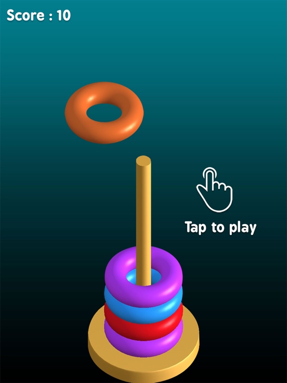 Fill up the stack with as many rings as possible to get a good score.In order, to add the ring to the stack, tap on the screen only when the ring on oscillation reaches the center of the stick on the stack.