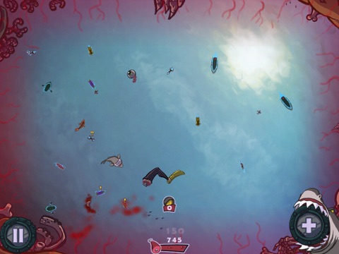 Ces méchants humains continuent de faire de la soupe d’aileron de requin, il est donc temps d’inverser les rôles ! Transformez-vous en prédateur des océans ; vengez votre famille et happez tout ce qui se trouve sur le chemin de vos puissantes mâchoires : nageurs, canards en plastique, super nanas et plus encore. Opérez depuis le fond de la mer car ces chasseurs meurtriers frappent avec une vitesse et une efficacité effrayante et engloutissez même vos propres amis ! Miam-miam ! Obtenez des succès pour permettre à votre machine à dévorer d’atteindre de nouveaux niveaux. Découvrez de nouveaux talents et instincts, affectez des points de tuerie pour donner à votre fougueux poisson un entraînement personnel et le rendre encore plus dangereux. Comparez vos meilleurs scores avec ceux de vos amis et profitez d’un règne de pure terreur dans le classement de meilleurs scores !