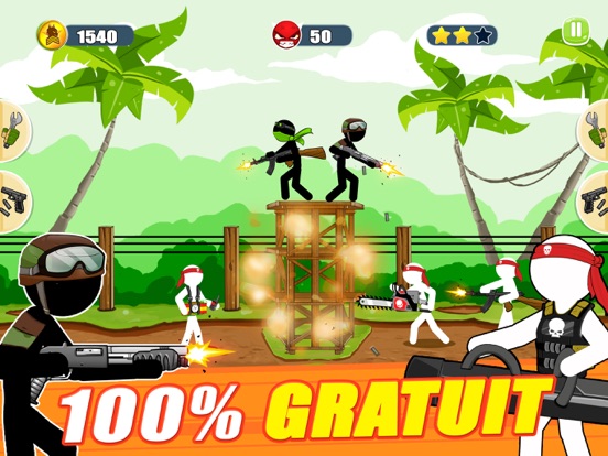 Une foule de stickman renégat ont commencé à envahir la jungle et tuer des gens. Le dernier espoir de la région est sa meilleure équipe de l'armée !!! Vous êtes une équipe de 2 super soldats bien entraînés. Vous êtes aux commandes d'un certain nombre d'armes puissantes qui peuvent arrêter les révolutionnaires. Vous pouvez mettre fin à cette guerre ... Mais cela va être une bataille épique.