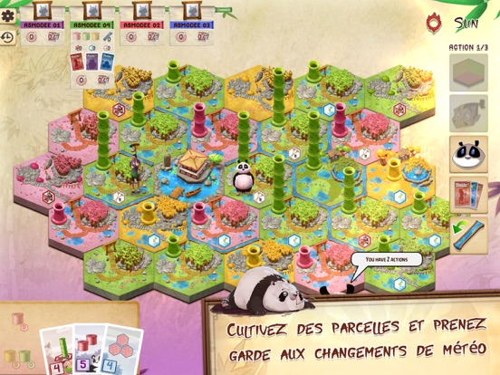 Pour prendre l’avantage sur vos adversaires, pensez à construire des aménagements : irriguez les bambous avec des bassins ou ajoutez de l’engrais pour accélérer leur croissance… A moins que la météo ne vous joue des tours !