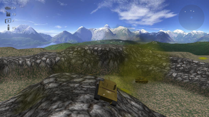 - Three tanks: Sherman, Tiger, or T34, each with movable turret and cannon.