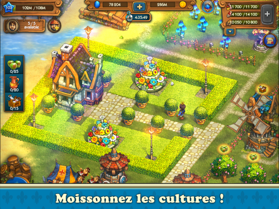 • Reconstruisez le royaume : construisez des scieries et des manufactures, cultivez du raisin et des aubergines, et élevez des cochons et des moutons