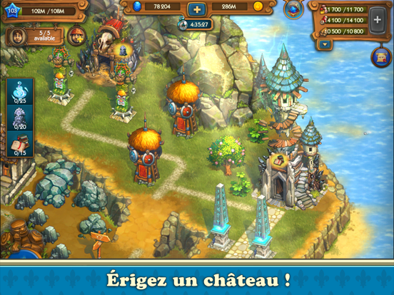 • Développez votre pays : construisez des tours fortifiées afin de protéger vos sujets, et érigez des statues et des fontaines pour renforcer votre influence