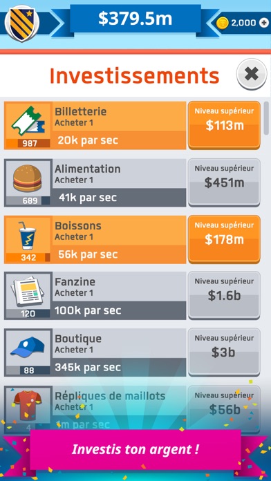 Tape du bout des doigts pour inciter les fans à venir dans ton stade. Gagne de l'argent en investissant dans la boutique, les visites du club et une alimentation savoureuse. Augmente tes bénéfices en signant des accords lucratifs de télédiffusion et suscite l'intérêt des plus grands investisseurs.