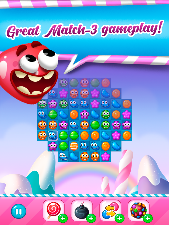 Switch and match the candy friends in this fun puzzle adventure to progress.