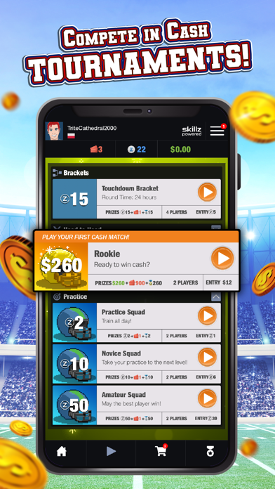 Welcome to Touchdown Hero, the Skillz-powered football game where you can compete with friends, ace the competition, and win big cash prizes. (where available)!