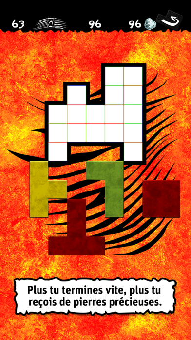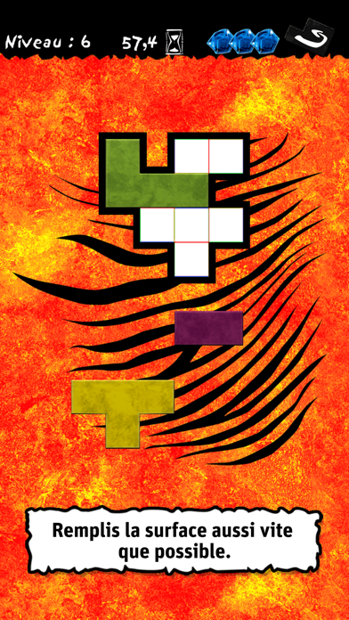 Remplis la surface aussi vite que possible avec les pièces adéquates. As-tu fait un bon coup ? Celui qui a terminé le premier est récompensé par des pierres précieuses.