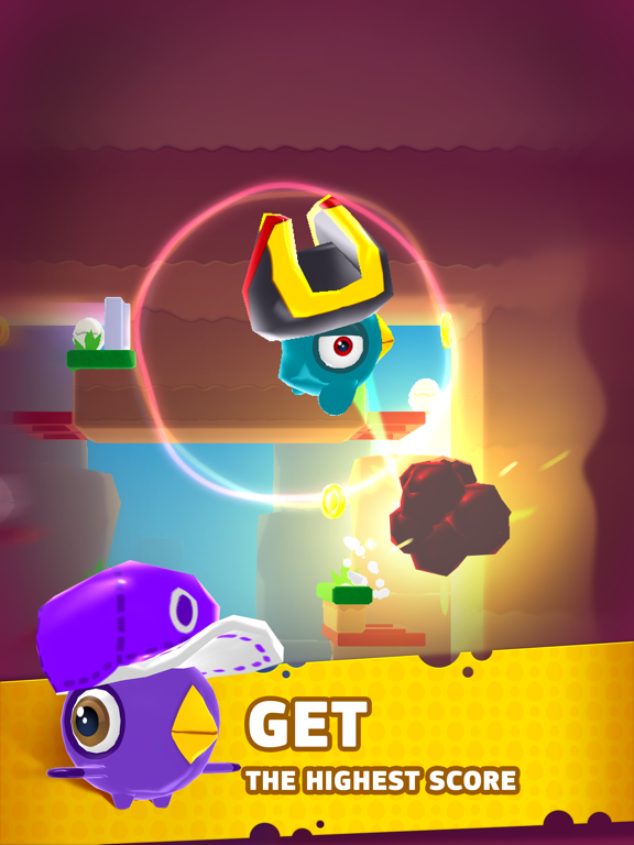 Bounce back and forth collecting eggs and avoiding bombs, use various powerups, open new characters, get amusing stickers, compete with your friends in weekly tournaments and have tons of fun!