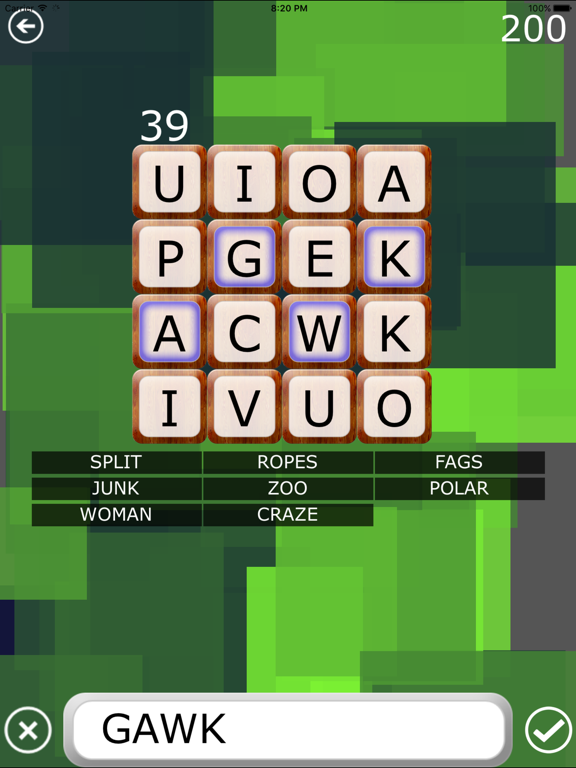 We adapted our very popular woggle game, and made it less stressful, while more compepitive if you want.