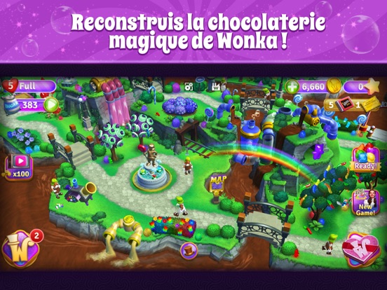* Jeu de type match 3 addictif : découvre plus de 1000 niveaux d'association classique avec la touche Wonka !