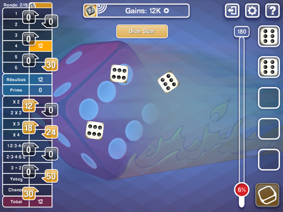 • Sélectionner la configuration de votre jeu préféré: Yatzy (Scandinavian - 5 dice), Maxi Yatzy (6 dice) & American Yatzy (5 dice)