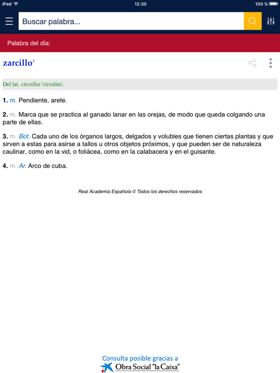 Resuelva al instante y de forma fácil cualquier duda sobre el significado de una palabra y sus características ortográficas y gramaticales, accediendo directamente a la base de datos de la Real Academia Española.